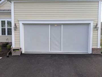 This cost is for a Lifestyle garage door screen installed with a retractable center door and is complete with polyester fabric and a 3-year warranty as well as ONE free screen replacement for the life you own the home because we know it's that good of a screen product. (White or Black Screen)